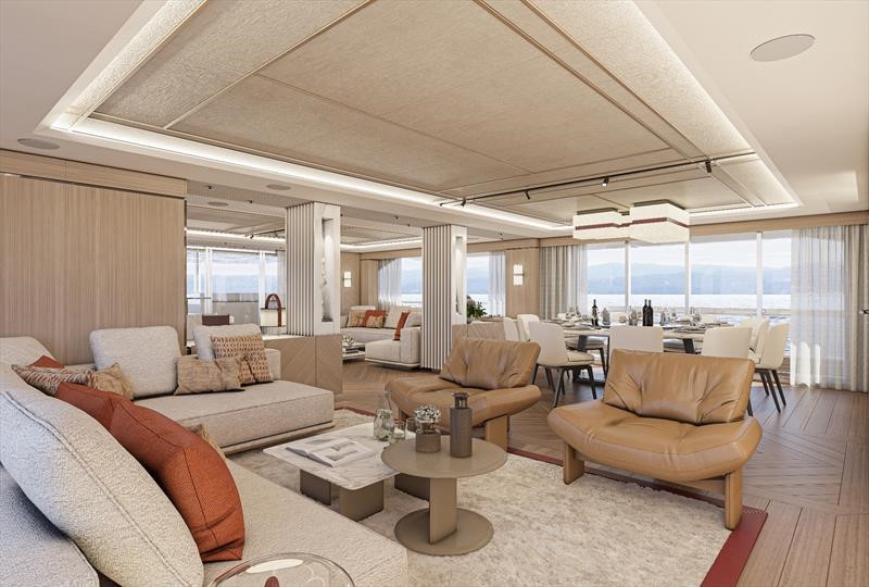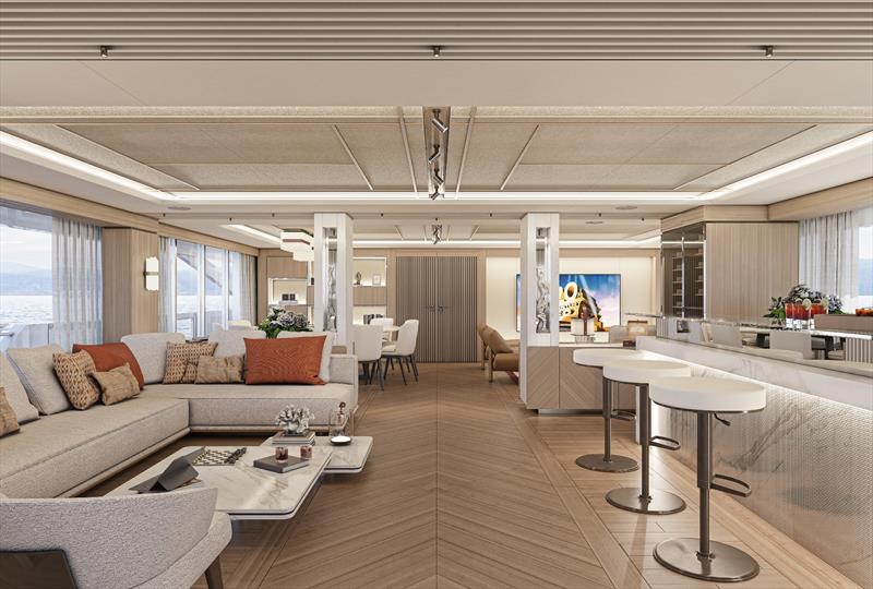 Talijanski dizajnerski studio Hot Lab, dio Viken Grupe, oblikovao je sofisticirani interijer jahte. Prostrani raspored uključuje do šest gostinskih kabina, uključujući vlasničku kabinu na glavnoj palubi s privatnom terasom, pružajući maksimalnu udobnost i privatnost. ​