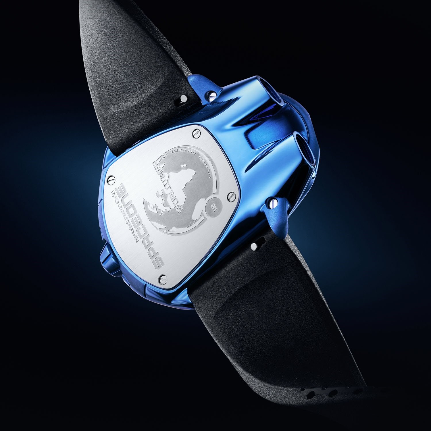 Kućište od ultra laganog titana (5. razred), promjera 52,7 mm, ali ergonomski oblikovan za zglob, kombinira brušeno, polirano i pjeskareno finiširanje, istaknuto s dva prominentna safirna kupolasta prozora.