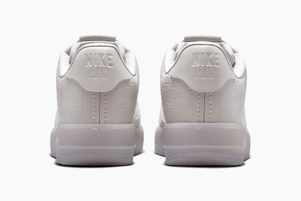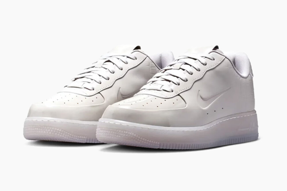 Swoosh je utisnut (debossed) umjesto ušiven, čime se dodatno naglašava čistoća siluete. Voštane vezice i diskretni privjesak u obliku ljiljana dodaju suptilan luksuzni akcent bez narušavanja balansa.