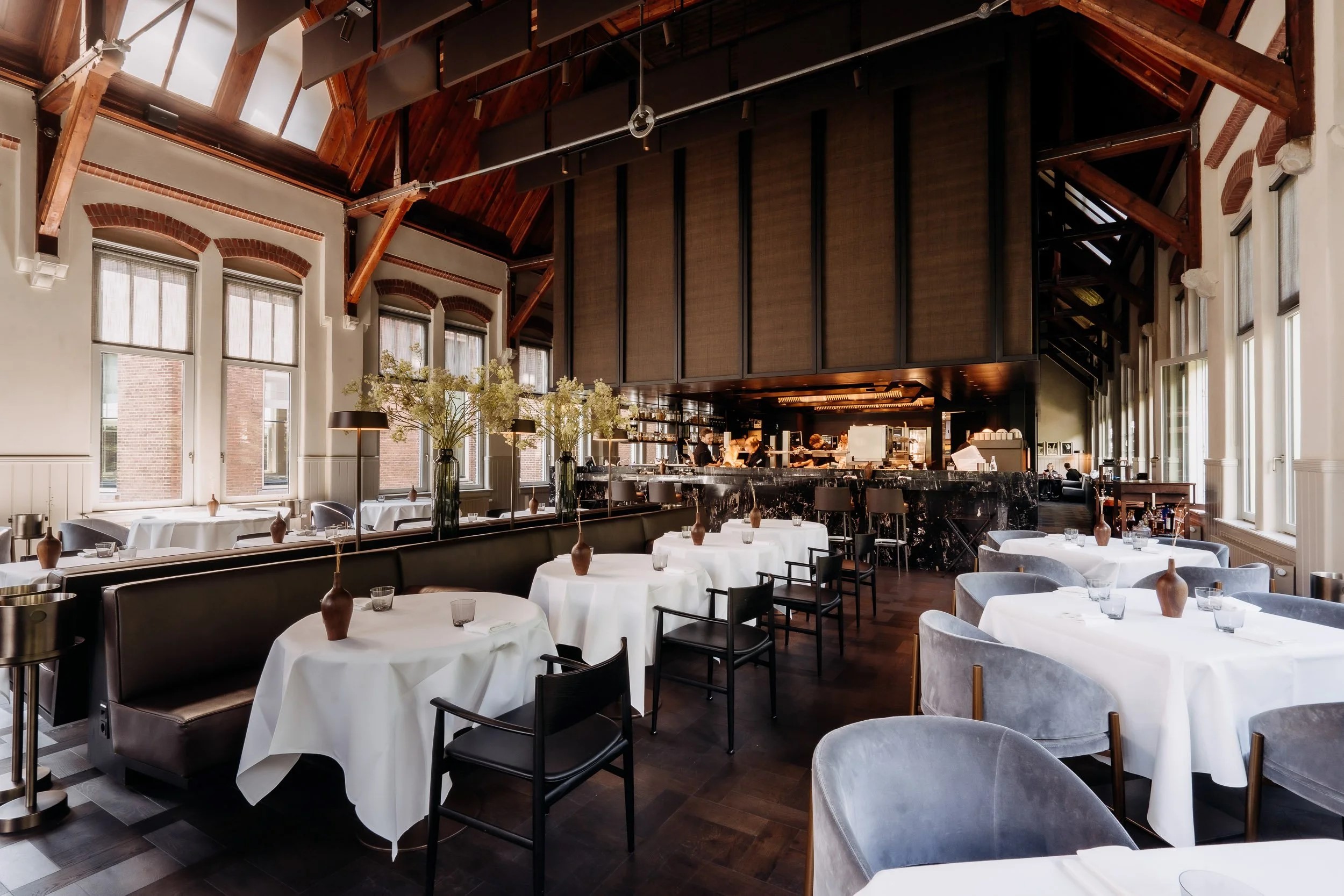 Smješten unutar luksuznog hotela Pillows Grand Boutique Hotel Maurits at the Park, VanOost nije samo restoran, već pažljivo osmišljeno iskustvo koje spaja arhitekturu, atmosferu i gastronomiju u koherentnu cjelinu. Nalazi u obnovljenoj zgradi nekadašnjeg sveučilišta iz 1908. godine, čiji povijesni karakter ostaje ključni dio identiteta prostora. Visoki stropovi, originalne drvene konstrukcije i vitraji stvaraju gotovo monumentalnu kulisu, dok otvorena kuhinja u središtu prostora uvodi element dinamike i transparentnosti. Ova kombinacija daje restoranu rijetku ravnotežu, istodobno djeluje grandiozno i intimno, sofisticirano, ali bez rigidnosti koja često prati fine dining koncepte.