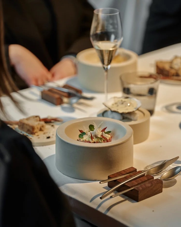 Srce iskustva čine degustacijski meniji, pet ili šest sljedova, s mogućnošću proširenja kroz signature jela ili ekskluzivni Chef’s Table koncept. Posebno se ističe Chef’s Table, gdje gosti sjede uz otvorenu kuhinju i izravno sudjeluju u kulinarskoj priči, promatrajući proces stvaranja jela u realnom vremenu. Takav pristup transformira večeru u performans, iskustvo koje nadilazi samu gastronomiju.