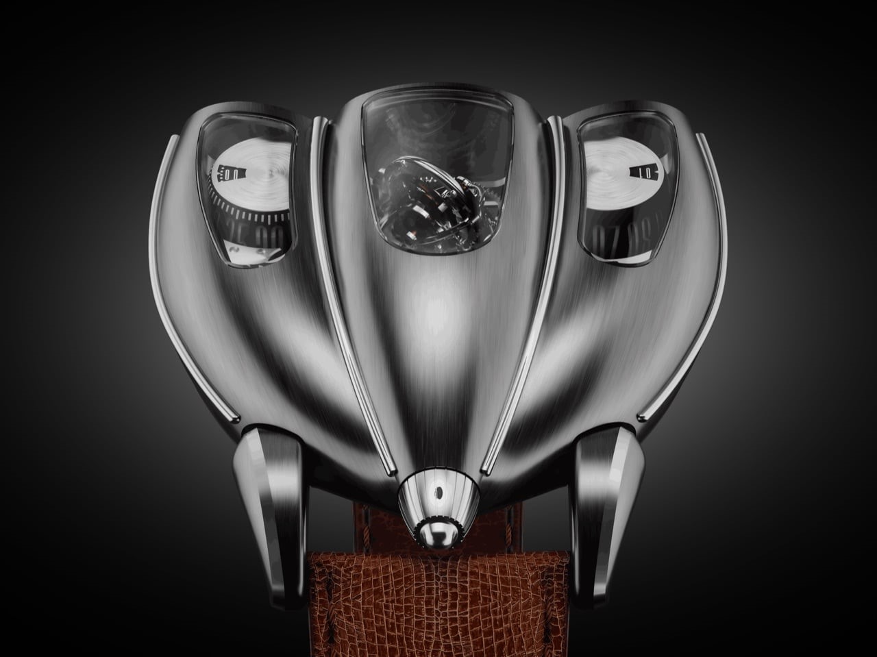 Vizualni identitet potpisuje Mo Coppoletta, čiji rad inače povezuje svijet luksuza, tipografije i body arta. Ovdje pristupa satu kao jedinstvenom objektu, a ne serijskom proizvodu. Kućište prati logiku talijanskog coachbuildinga – forme koje proizlaze iz funkcije, a ne obrnuto. Referenca na aerodinamične linije trkaćih automobila iz 1920-ih i 1930-ih očituje se u tzv. “teardrop” silueti.