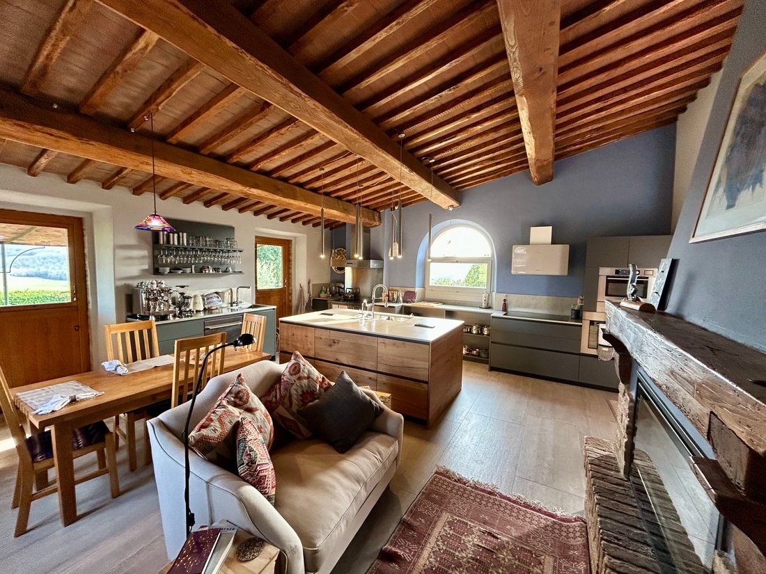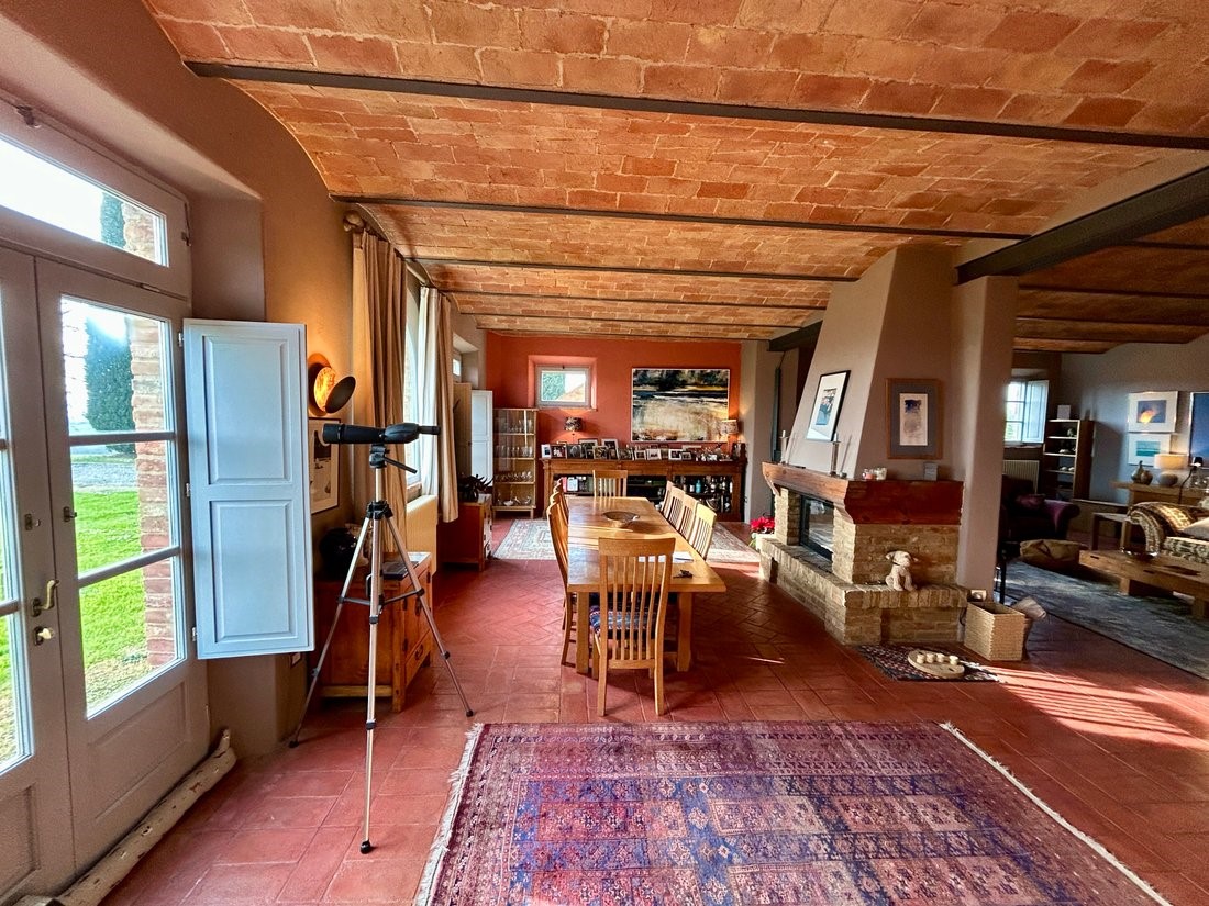 Na 28 hektara zemlje, s pogledom na brežuljke oko Siena, ovaj obnovljeni seoski kompleks nudi rijetku kombinaciju privatnosti, arhitektonske autentičnosti i suvremenog komfora.