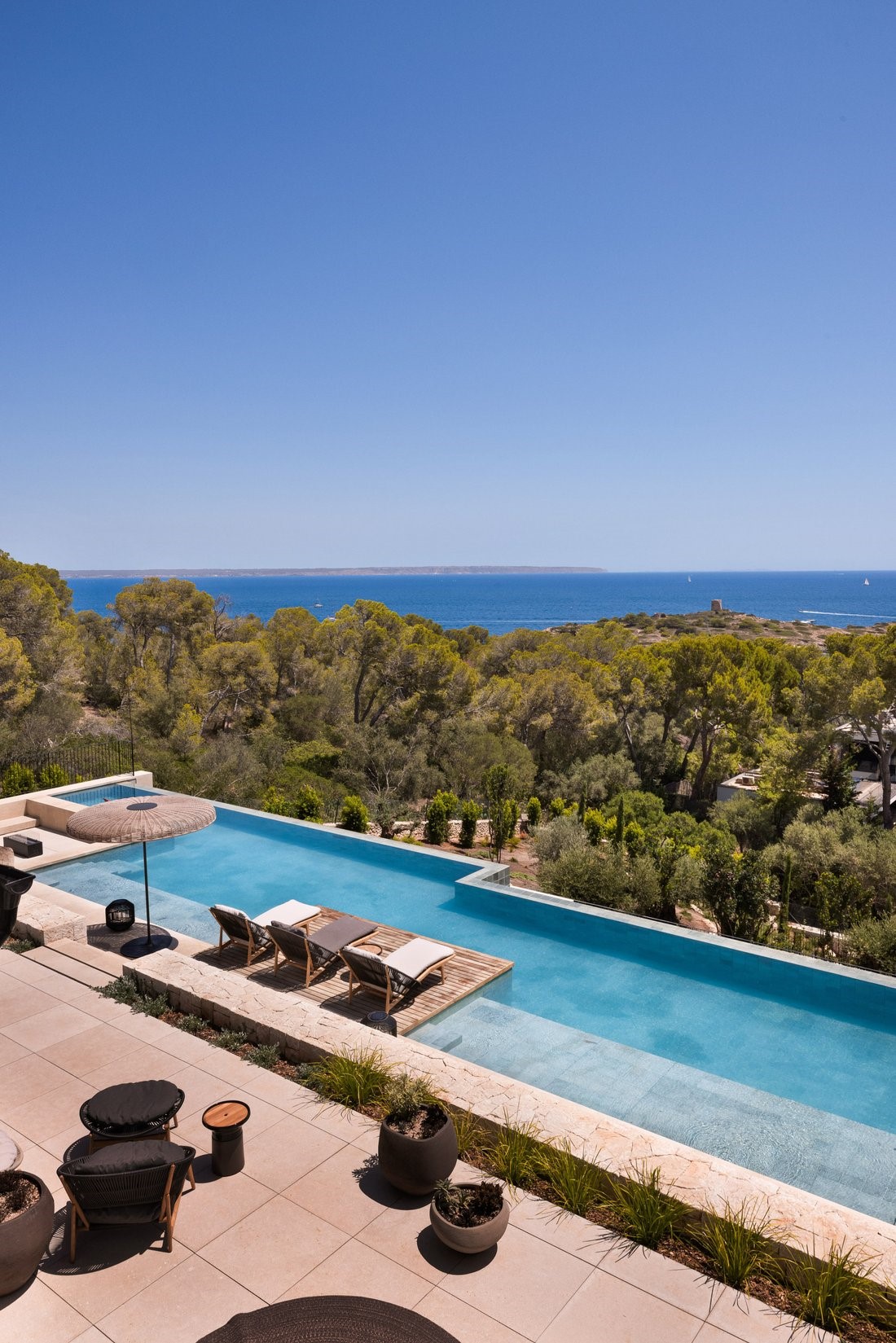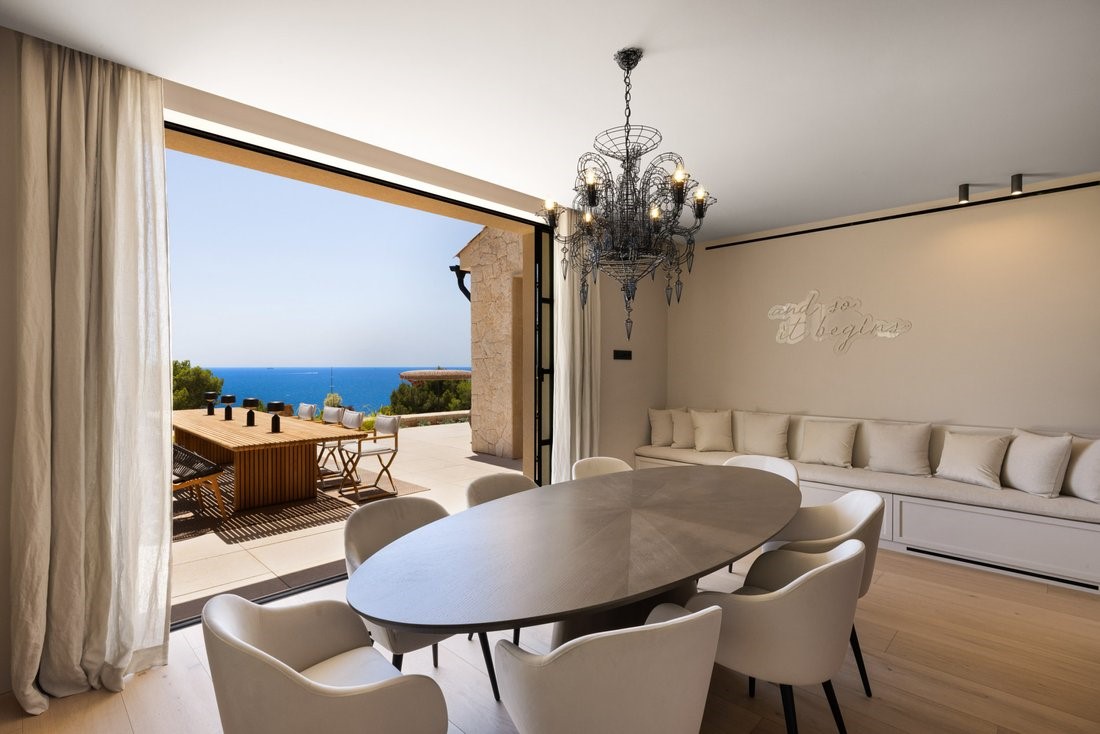 Panoramski pogled obuhvaća: obalu Bendinata, otok Illetas, i u daljini Cabrera. No ono što ovu nekretninu razlikuje nije sama vizura, već način na koji je arhitektura koristi. Svaka prostorija orijentirana je prema horizontu. Svjetlo nije dodatak, ono definira prostor.